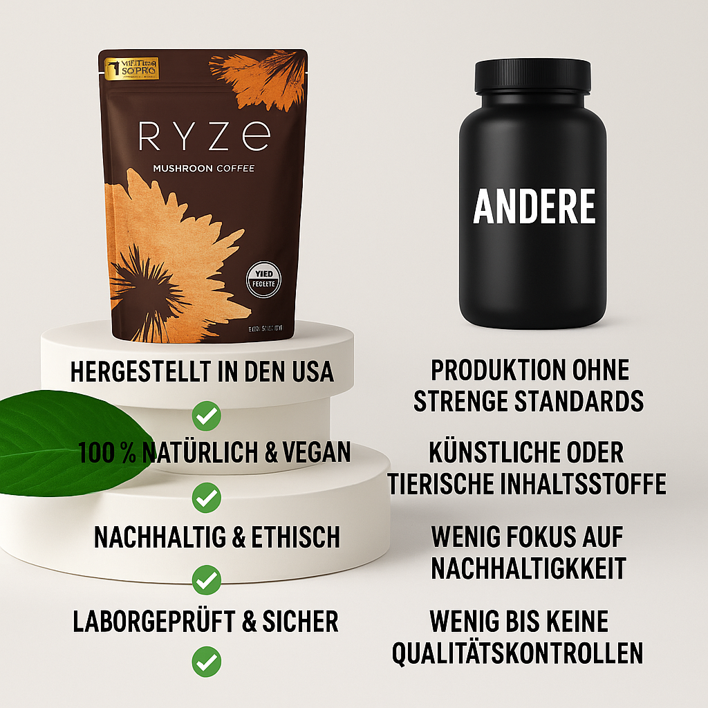 In einer Welt voller überzuckerter Energy-Drinks, Koffein-Overload und künstlicher Wachmacher setzt Ryze ein Zeichen: Natürliche Wirkung ohne Kompromisse.